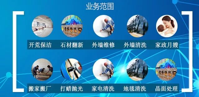 主要承接寫(xiě)字樓、住宅區、商場(chǎng)、工業(yè)廠(chǎng)房、旅游景區、醫院、學(xué)校、賓館酒店、地鐵站、市政道路、別墅及車(chē)站、港口碼頭、提供日常保潔養護;空調清洗保養、外墻高空清洗、大型廣告牌、高空安裝、拆卸、保養、涂料粉刷;各類(lèi)地板拋光打蠟、石材晶面處理、大理石材翻新養護,地毯清洗,大型油煙機清洗;生活垃圾清運、小區園林綠化;新居裝修后室內外整體清潔開(kāi)荒、殺蟲(chóng)消毒等業(yè)務(wù)。
