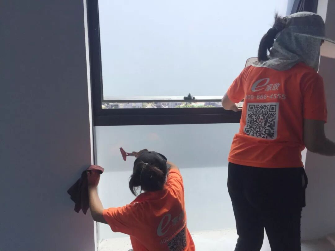 擦玻璃也是一個(gè)很麻煩的活,現場(chǎng)玻璃不僅數量多、面積大,而且還不易擦干凈。不過(guò),這些對e家政的專(zhuān)業(yè)開(kāi)荒人員來(lái)說(shuō),也不是難事。