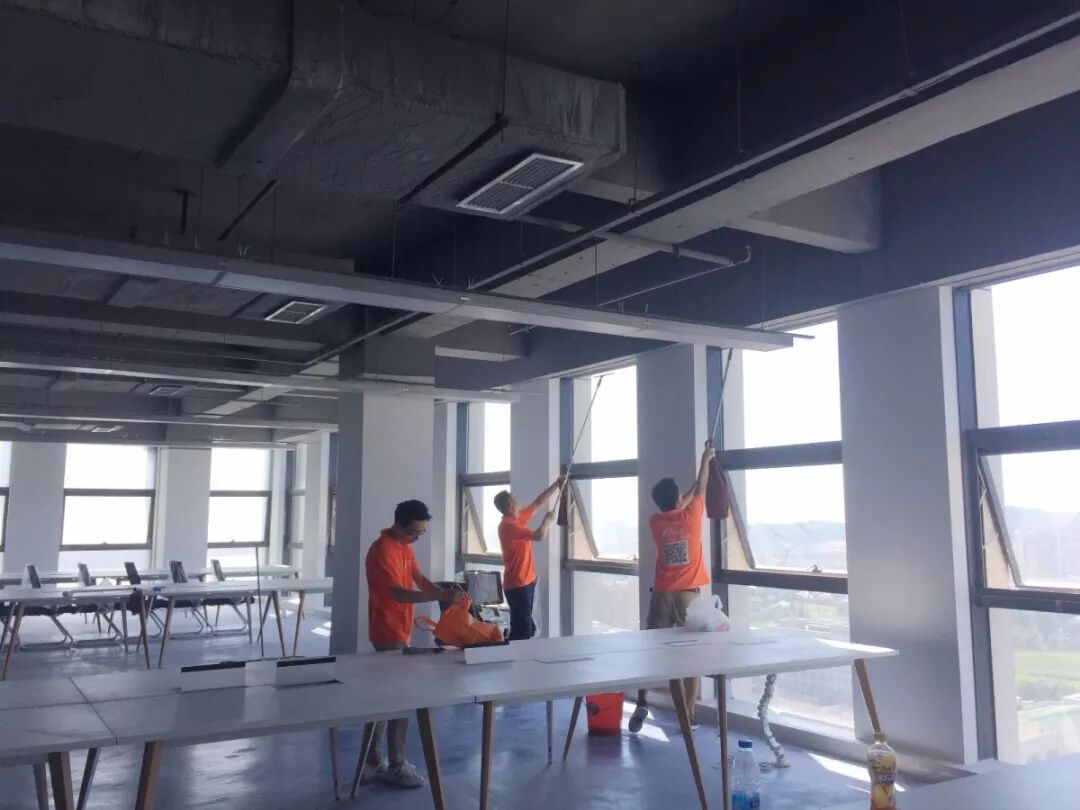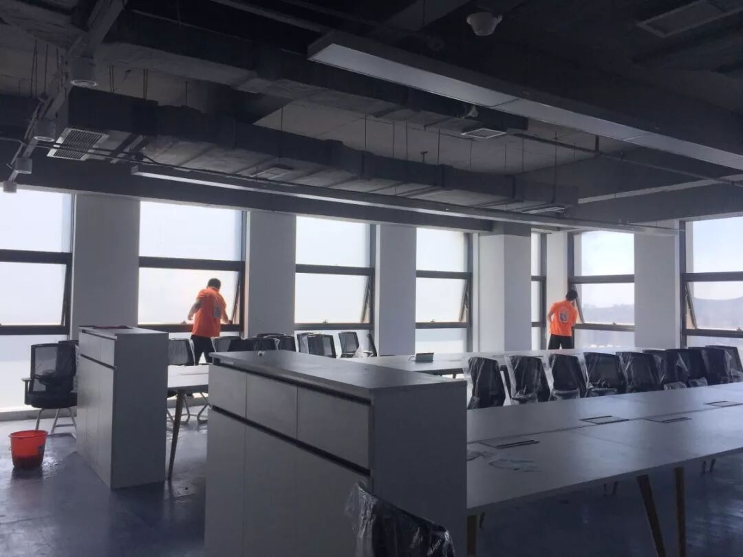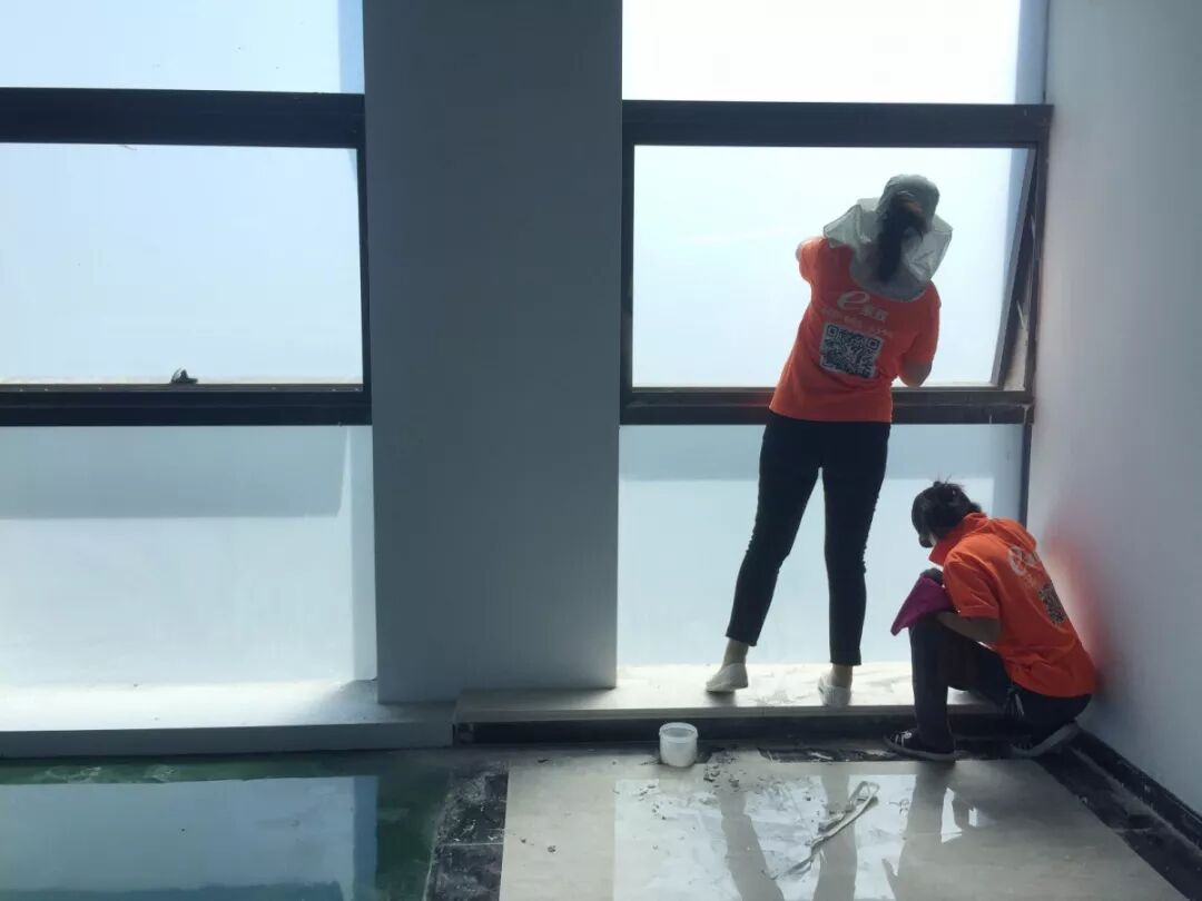 這里塵土飛揚,還夾雜著(zhù)裝修后的刺鼻氣味,雖然條件艱苦,但我們最可愛(ài)的家政人員沒(méi)有怨言,他們揮汗如雨地清理每一塊玻璃、每一個(gè)漆點(diǎn)、污漬,以高標準、嚴要求的匠心品質(zhì)要求自己,不放過(guò)任何死角。