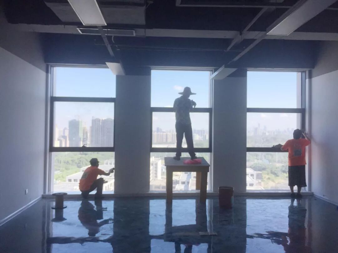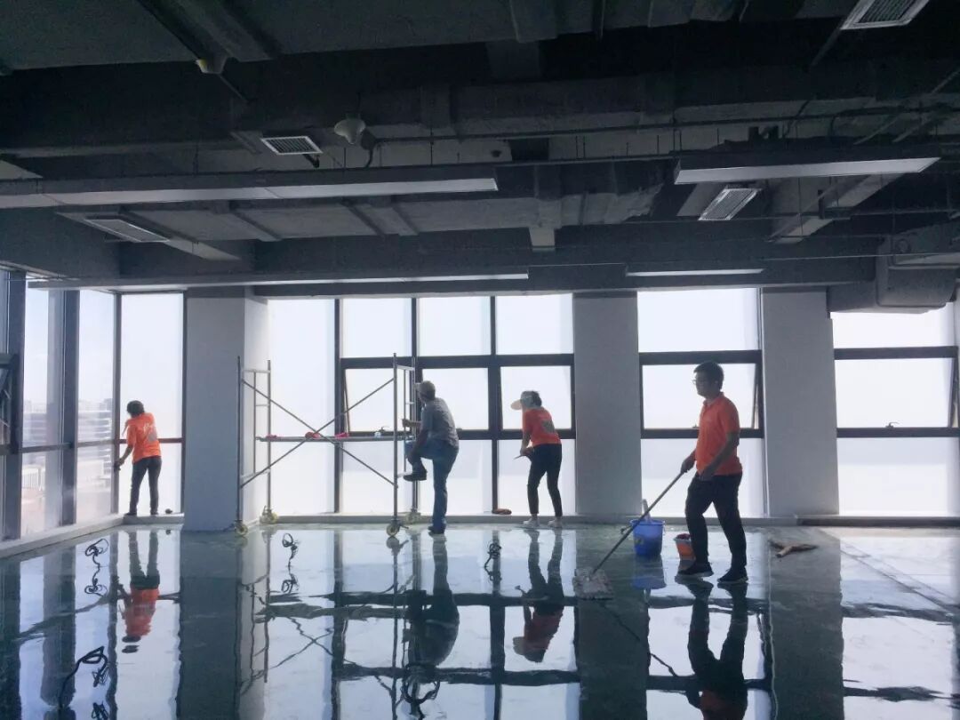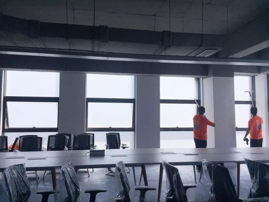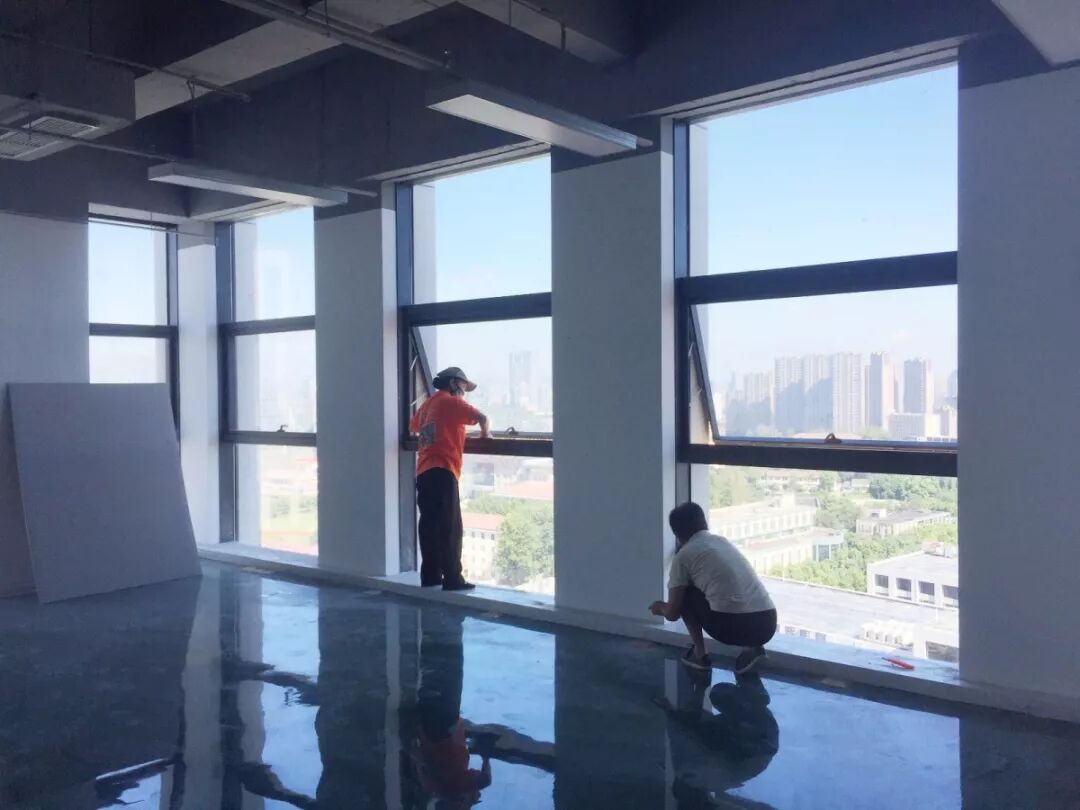 開(kāi)荒地址位于雨花臺云密城15樓的辦公樓,總面積約1500平米。內有三個(gè)全是落地窗的開(kāi)放式辦公區域,還有近10間獨立辦公室、會(huì )議室、衛生間等,從電梯到走廊,再到各個(gè)辦公區,地面上堆滿(mǎn)塵土,玻璃上都是水泥漿塊、油漆、玻璃膠等頑固污漬,給開(kāi)荒任務(wù)帶來(lái)一定挑戰。