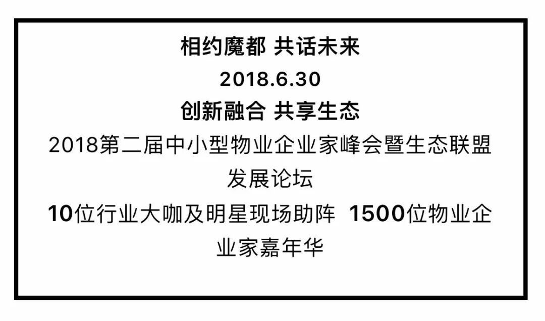 ●2018第二屆中小型物業(yè)企業(yè)家峰會(huì )暨生態(tài)聯(lián)盟發(fā)展論壇(1500人)